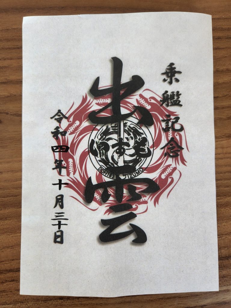 我が家は到着も遅く、お昼ご飯を食べに行ったりドブ坂通りの方を見に行ったりもしたので乗艦できたのはいずもだけでした🥹